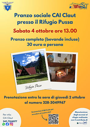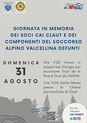 - Presso la Sede C.A.I: Claut il Sabato pomeriggio dalle 16,00 alle 17;30..